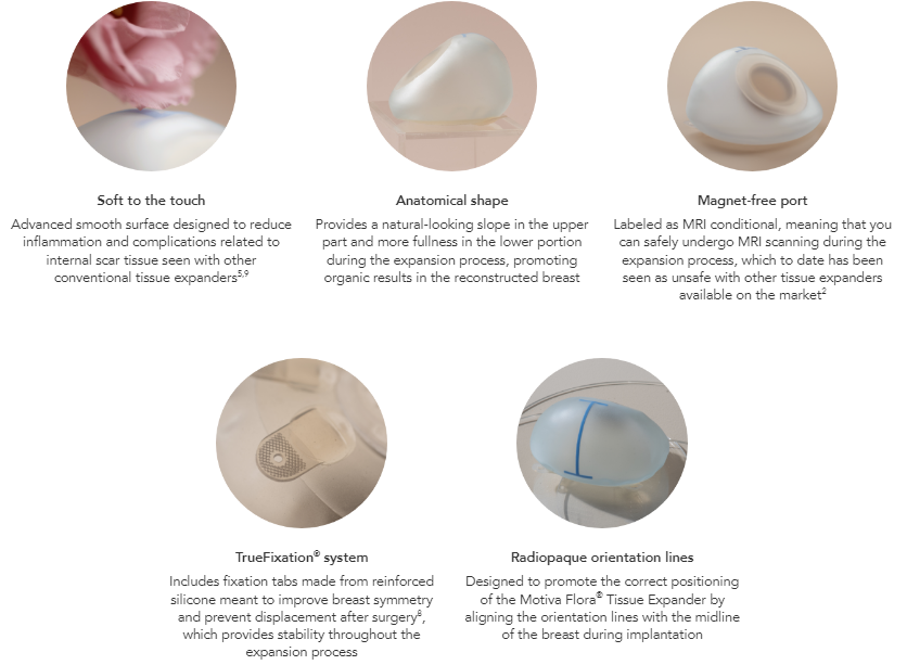 The Motiva Flora® Tissue Expander was purposely built with a nonmagnetic port in its detection system to offer women a safe solution to MRI scanning during the tissue expansion process.